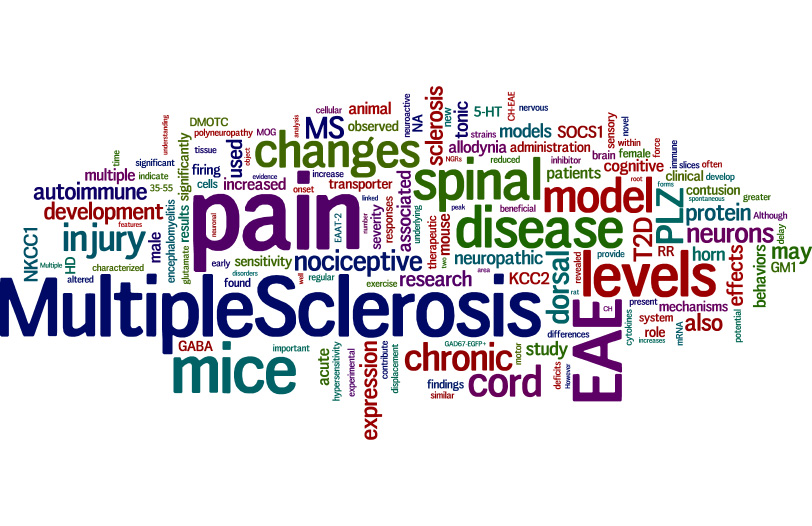 Chronic pain can develop in patients with the disease Multiple Sclerosis (MS). Because the central nervous system (spinal cord and brain) is affected in diseases like MS-this type of chronic pain is referred to as ‘central neuropathic pain’ (CNP). CNP affects nearly half of the people with MS and is incredibly distressing. The research in my laboratory addresses the cellular mechanisms that generate CNP in neuroinflammatory diseases like MS. My research uses a mouse model of autoimmune demyelination that resembles MS, experimental autoimmune encephalomyelitis (EAE). Our research to date has revealed that sensory neurons which reside in a structure of the peripheral nervous system known as the ‘dorsal root ganglion’ become stressed when a disease affects the spinal cord and brain. Stressed sensory neurons can begin to send inappropriate signals into the central nervous system and we hypothesize that this is a major factor that establishes CNP in diseases like MS. Our studies are examining this at a variety of levels. First, we aim to understand the specific changes that arise in a stressed sensory neuron that can cause it to function inappropriately. We are also examining several novel therapeutic strategies, including exercise, that are aimed at relieving the stress on the neurons to determine if this will restore normal function and relieve CNP.